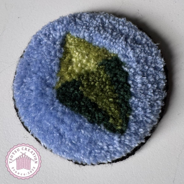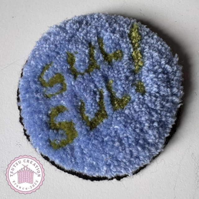 Entièrement fait à la main avec la technique du punch needle, munis d'un tissu anti-dérapant et finitions à la main également.