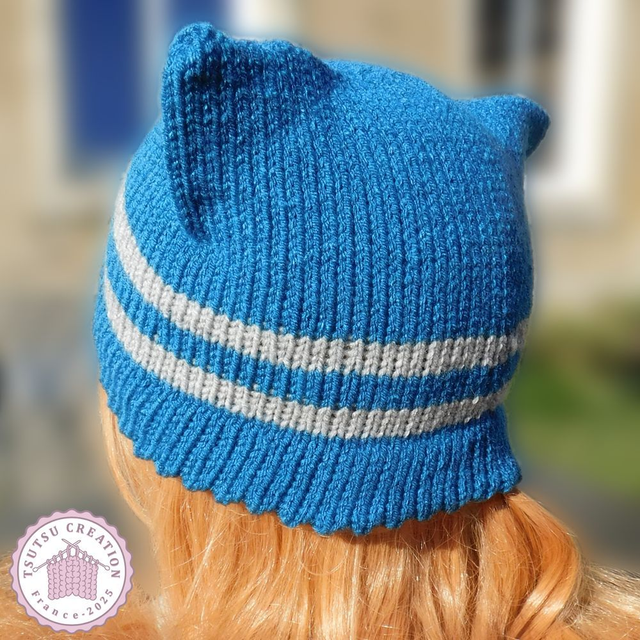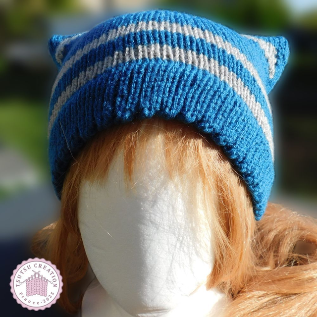 Bonnet chat Bleu et Gris